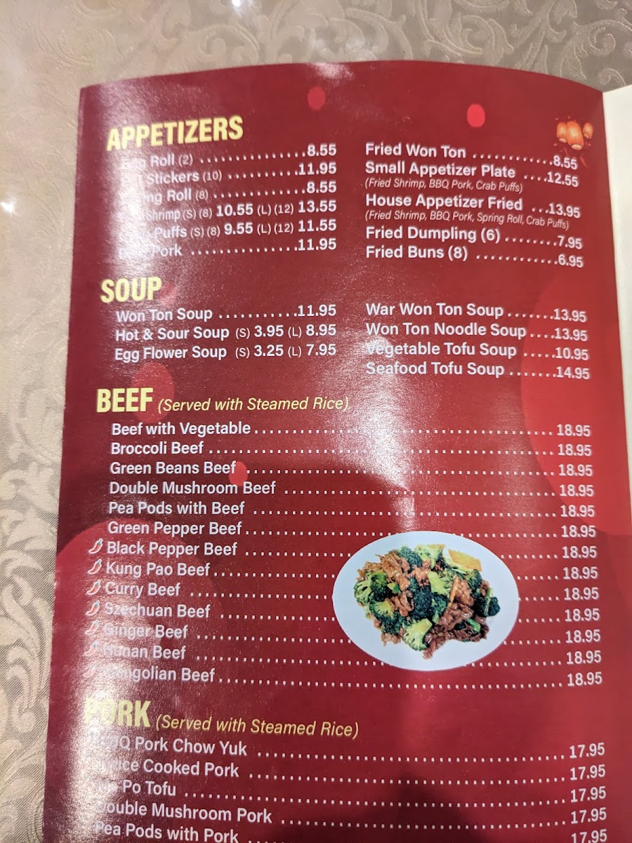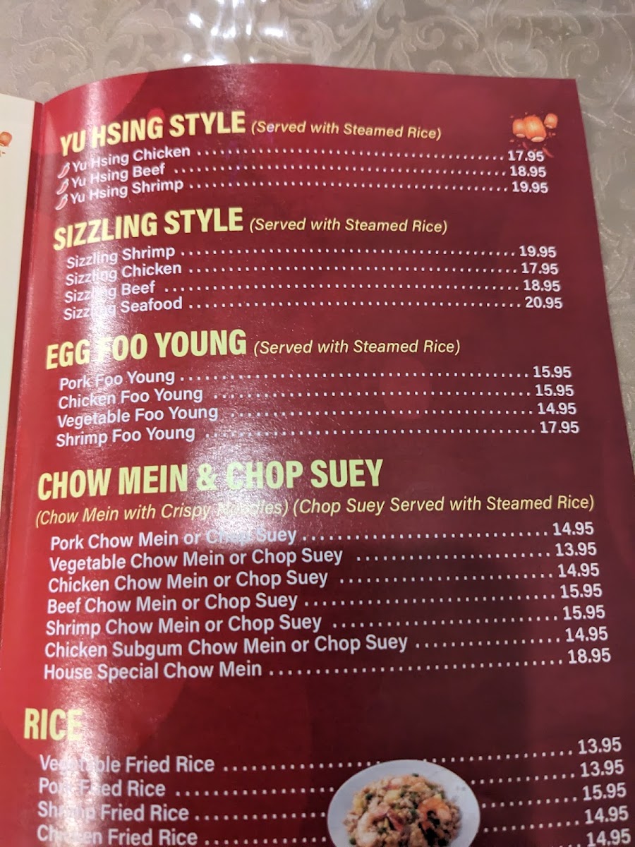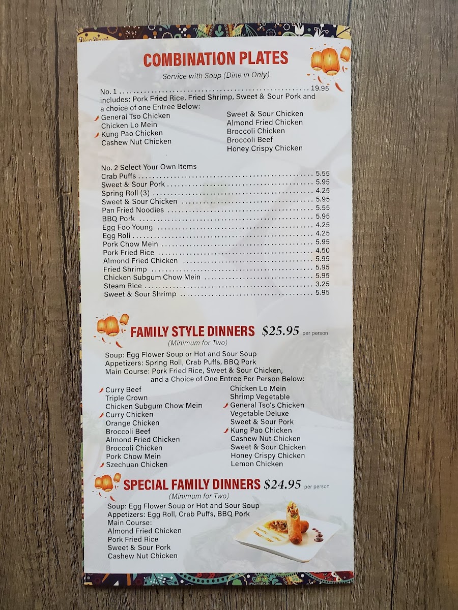 Overall, the menu provides a balanced selection of appetizers, main courses, and combination plates, enabling visitors to explore traditional Chinese flavors through well-organized categories.