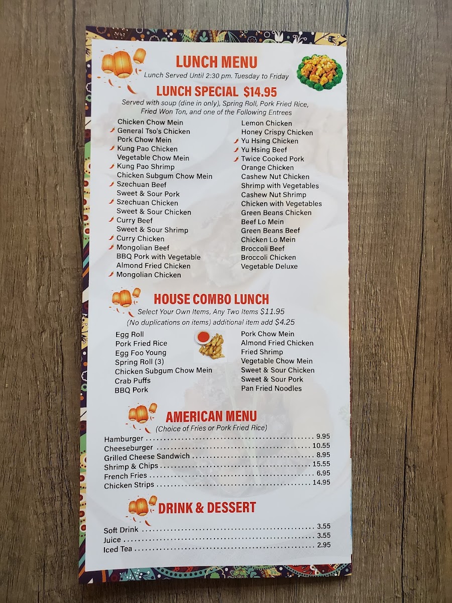 Happiness Chinese Restaurant Menu